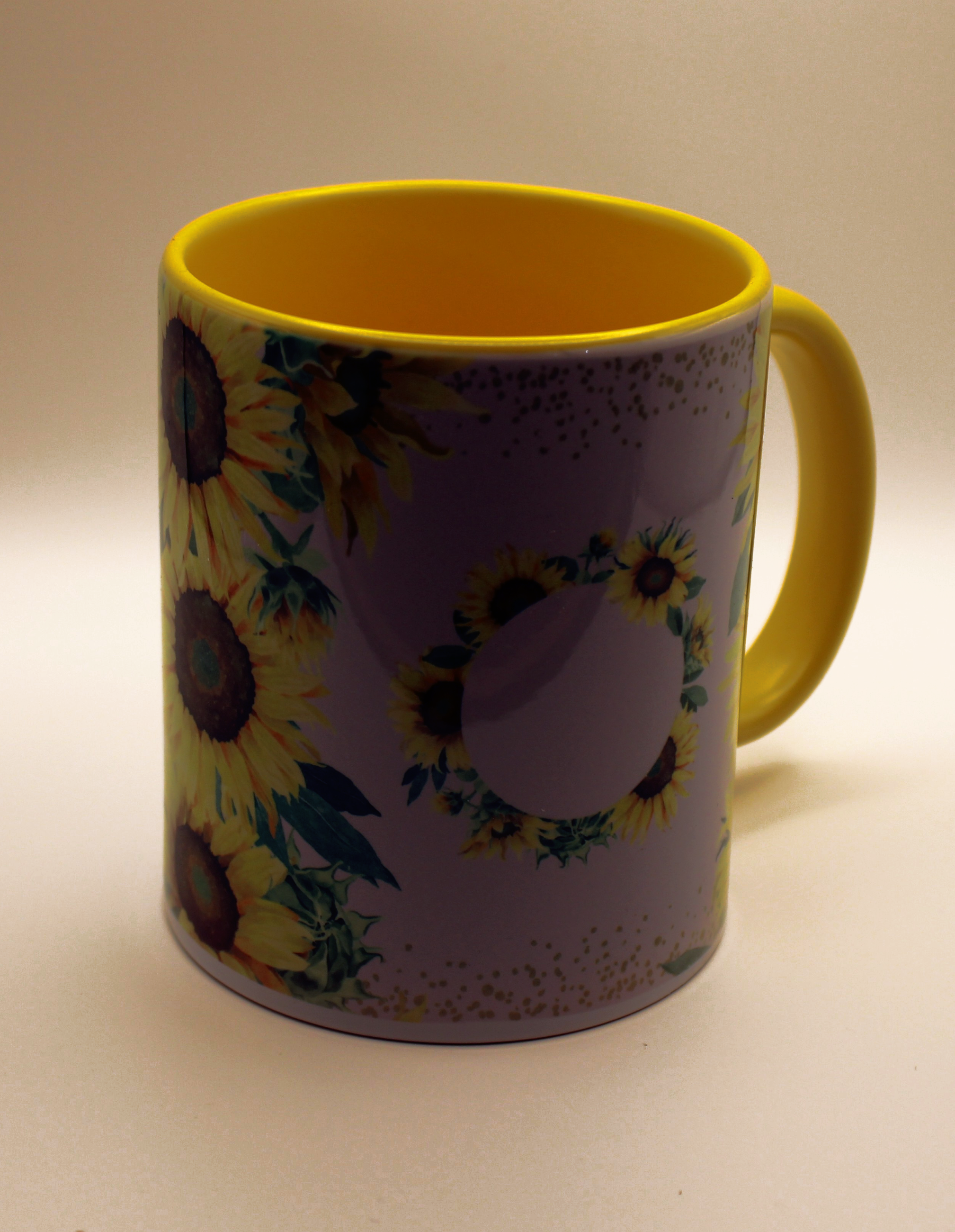 Colorful, cheerful images are applied to a ceramic mug using a high heat press.