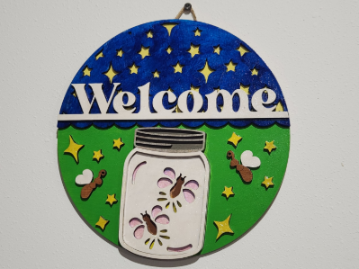Description: Elevate your home decor with this eye-catching 10-inch multilayered laser-cut sign, featuring a beautifully crafted mason jar with fireflies. The intricate laser-cut details and multilayered design bring this enchanting scene to life, making it a perfect statement piece for your entryway, living room, or any other space in your home. Crafted with precision and care, this sign adds a unique and personalized touch to your decor.
